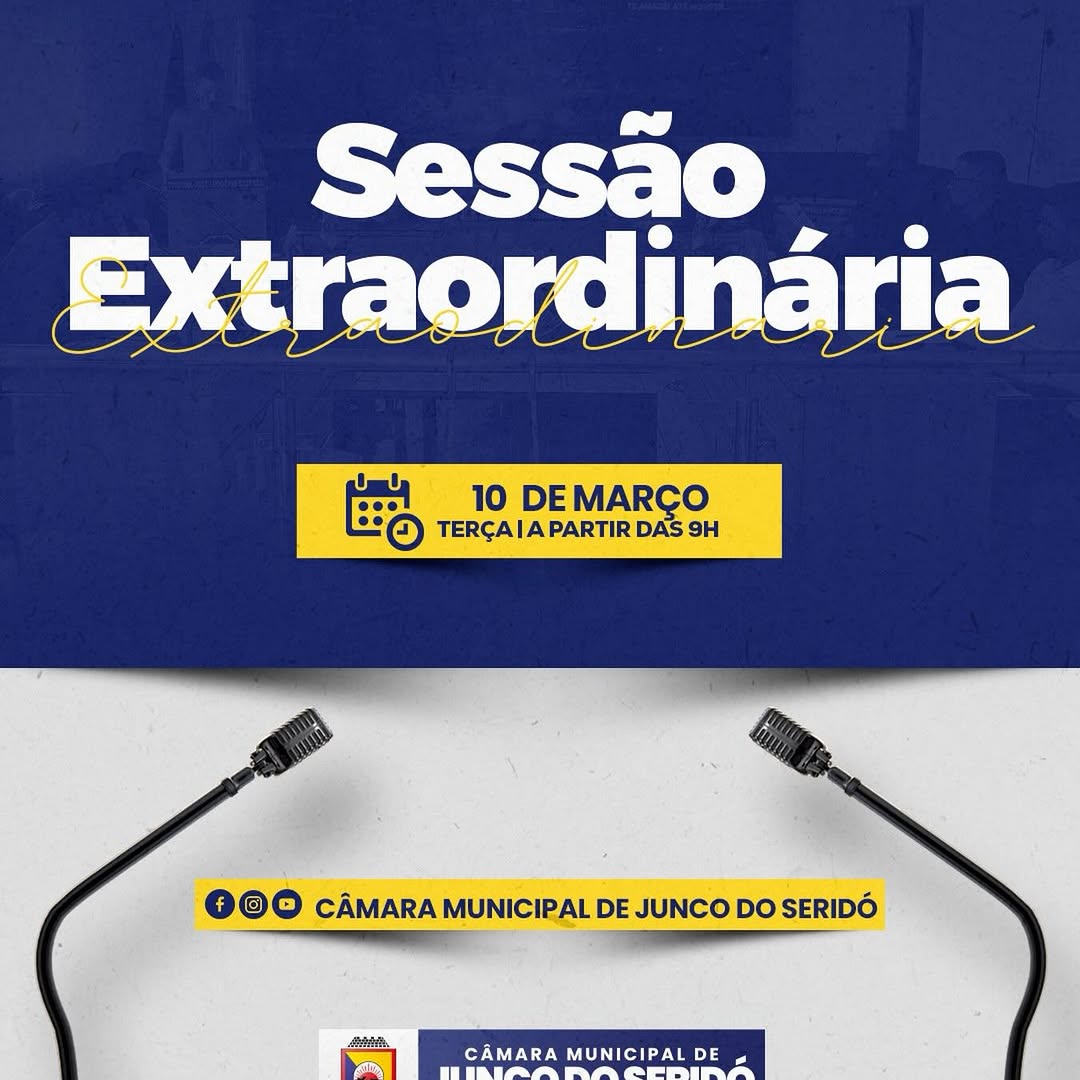 A Câmara Municipal de Junco do Seridó anuncia a realização de uma Sessão Extraordinária, agendada para amanhã, às 9h da manhã. O encontro ocorrerá no plenário da Casa Legislativa e convida toda a população a acompanhar de perto os trabalhos dos vereadores. Esta sessão visa debater e deliberar sobre pautas de interesse coletivo, reforçando o compromisso da gestão pública com a transparência e a participação cidadã.